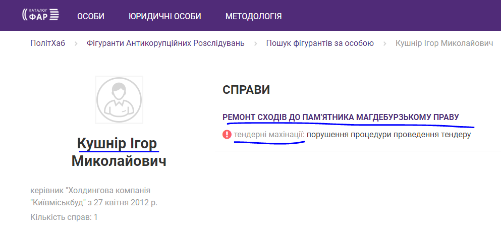 Інформаційний ресурс «Чесно» зафіксував тендерні махінації, пов’язані з ремонтом сходів до пам’ятника Магдебурзькому праву. Йшлося про порушення процедур проведення тендеру.