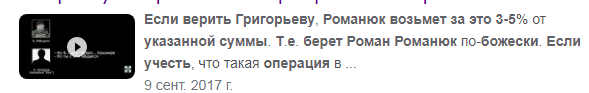 За словами Григор’єва, Романюк бере за таке від 3 до 5% від загальної суми.