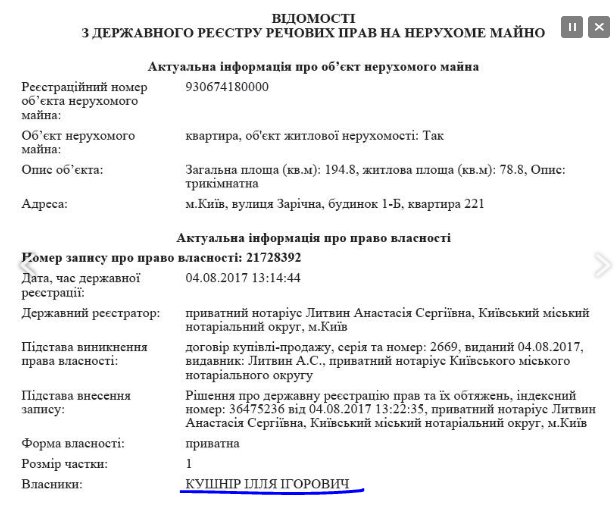 Син і дочка Кушніра в 2017-му володіли нерухомістю на загальну суму в 1 100 000 доларів.