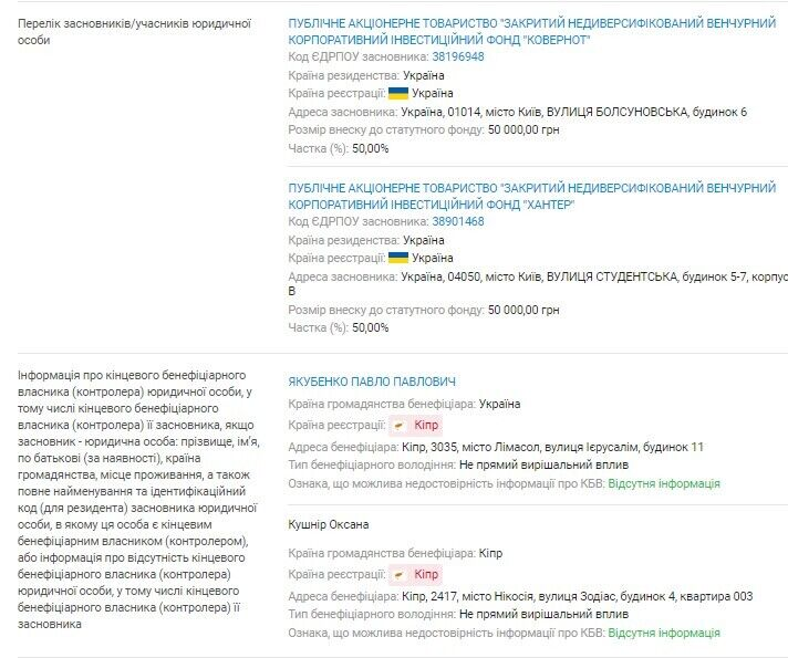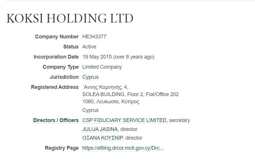 Компания Koksi Holdings LTD, принадлежащая Оксане Кушнир, является одним из бенефициаров инвестиционного фонда “Ковернот”,