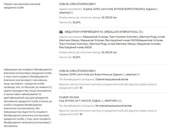 Новым владельцем компании “ИНВЕСТКОНСАЛТИНГ-К” стала компания “МЕДАЛИОН ИНТЕРНЕЙШЕНЛ КО”, конечным бенефициарным владельцем которой является Оксана Кушнир.