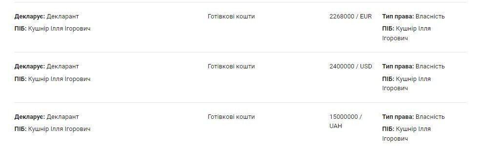 В декларации за 2023 год молодой депутат регистрирует 2 миллиона 400 тысяч долларов, 2 миллиона 268 тысяч евро, 15 миллионов гривен.