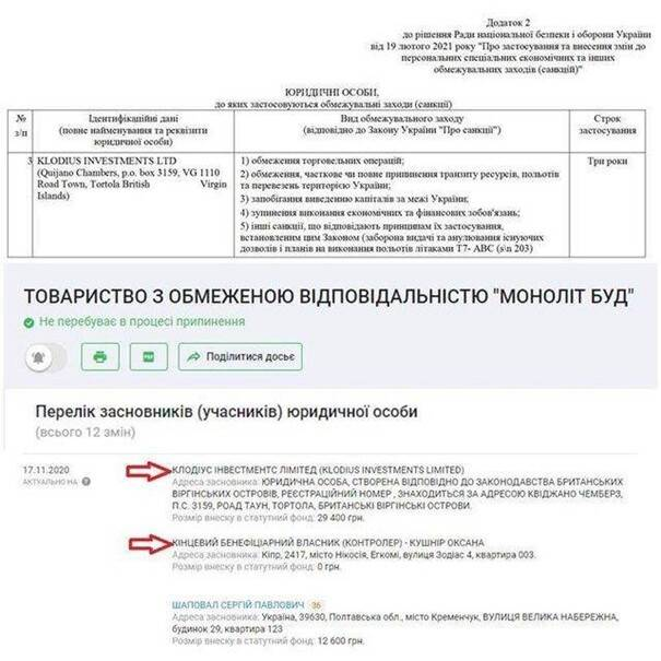 NSDC sanctions of Ukraine: the offshore structure of the wife of Ihor Kushnir, head of Kyivmiskbud, has been targeted
